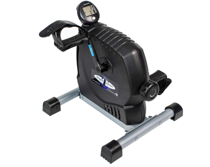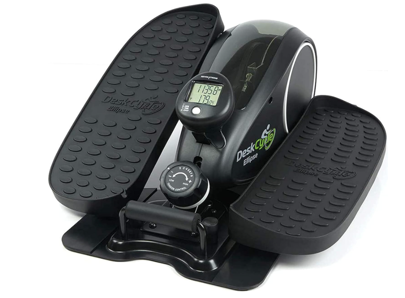 Deskcycle's under-desk cycle has 8 calibration settings to adjust pedaling resistance. The Ellipse model offers an expanded resistance range with 16 levels for more intense workouts.